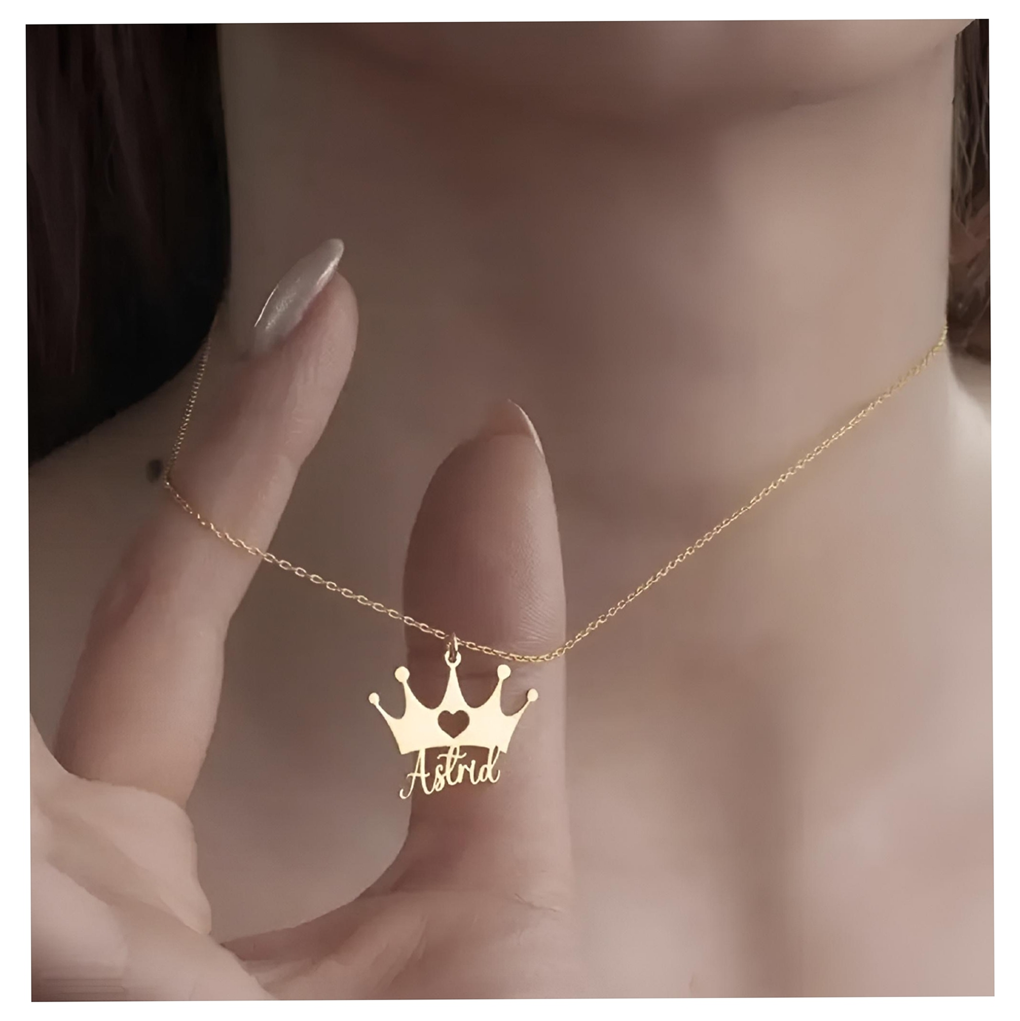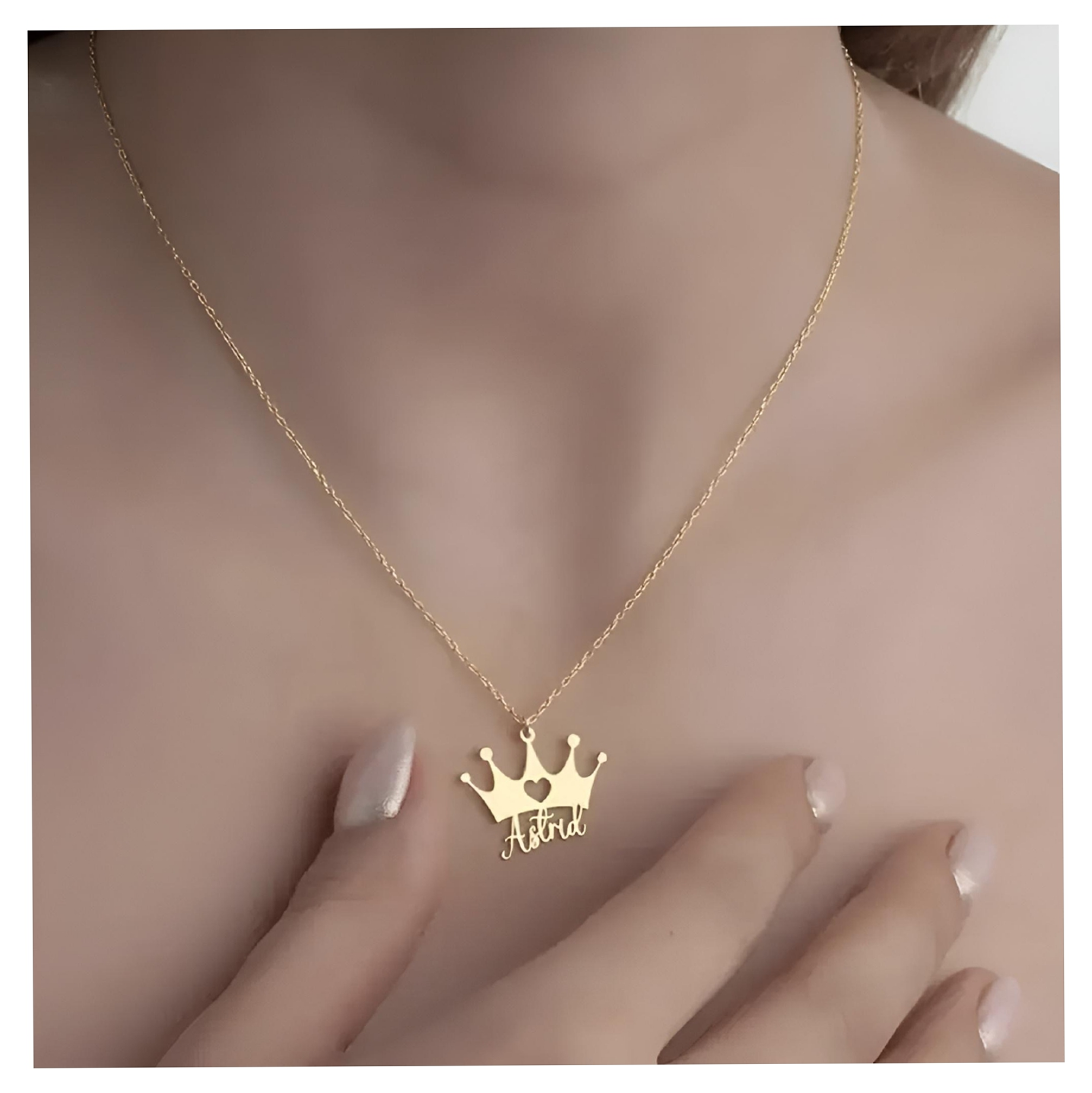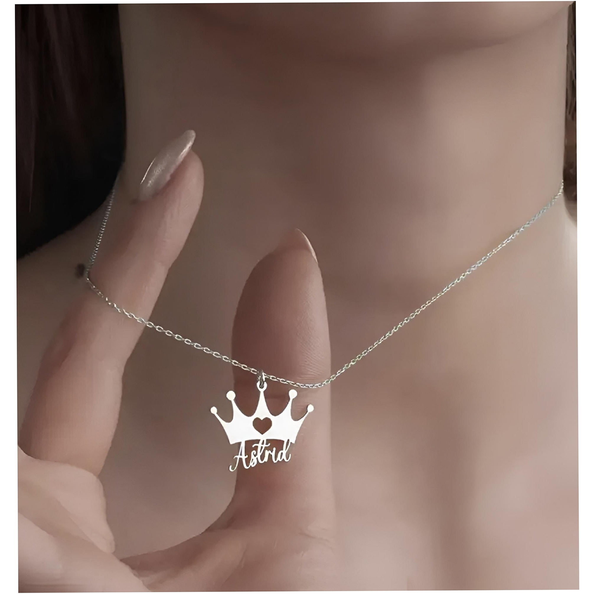 قلادة راقية تحوي على تاج ملكي وإسم مخصص من اختيارك