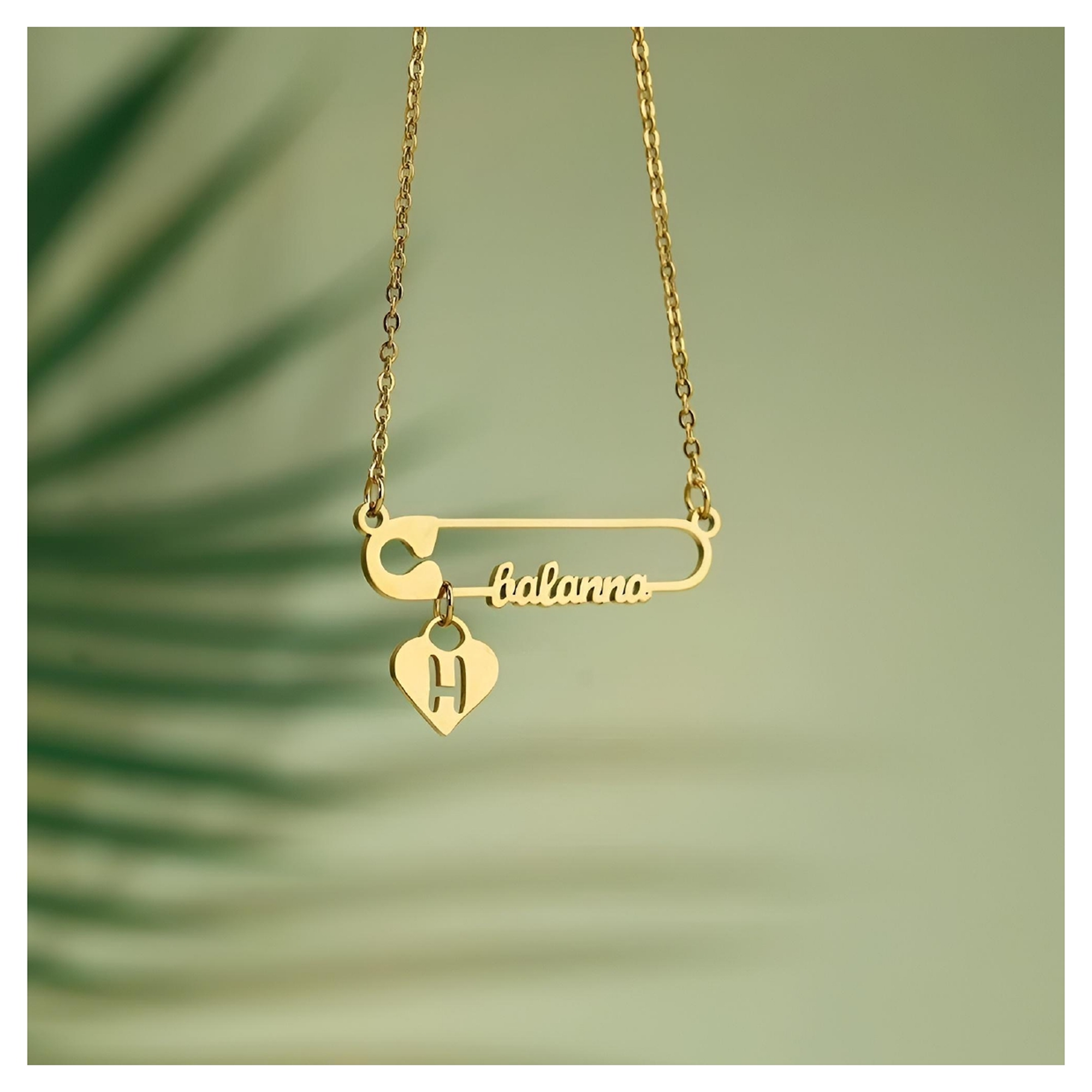 قلادة على شكل دبوس تحتوى علي اسم وحرف