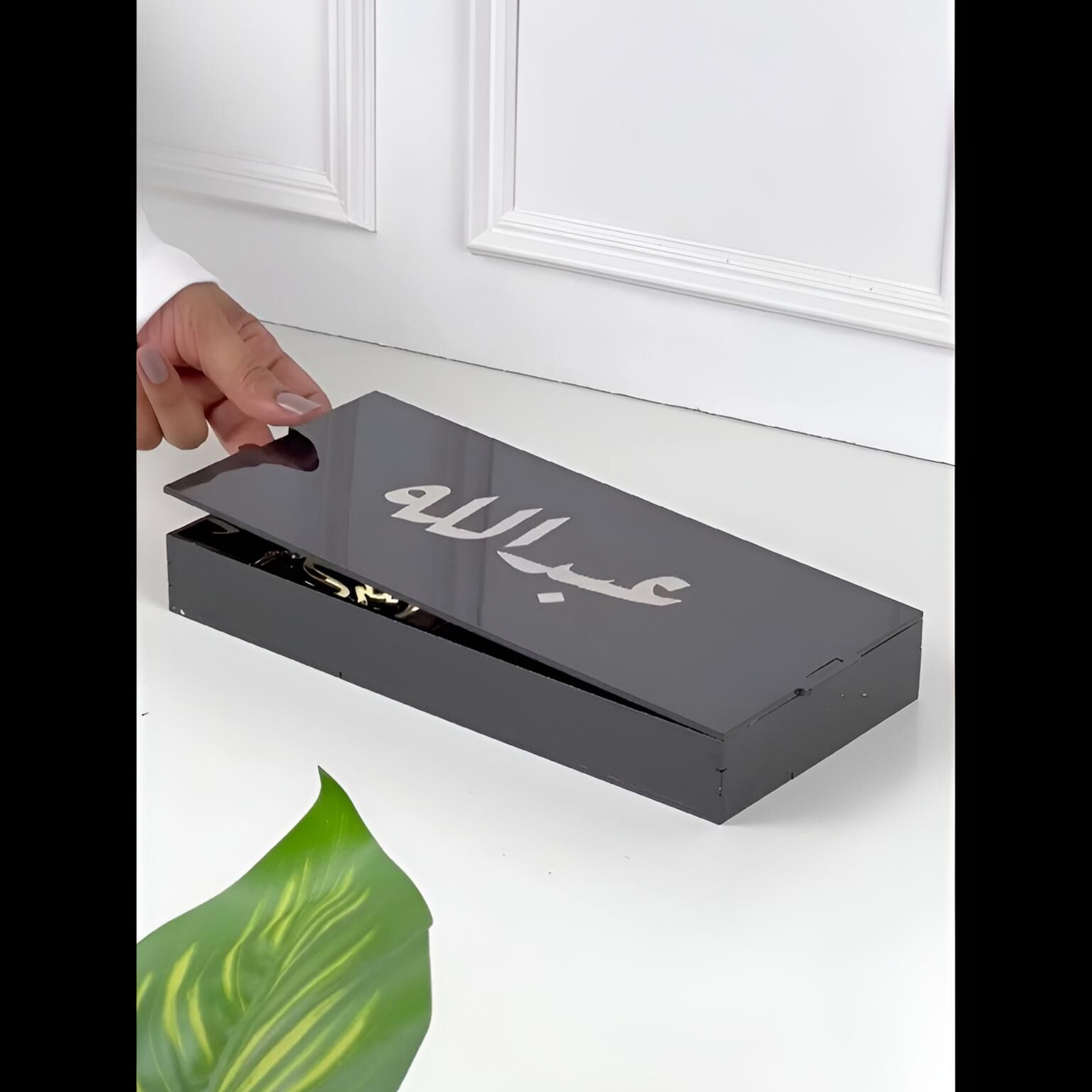 هدية رجالي راقية جدا عبارة عن بوكس عليه اسم مخصص يحتوي على تعليقة سيارة بأسم وبخور سيارة ومسباح كهرب بأسم مخصص وكسارة بخور بأسم مخصص ومسك